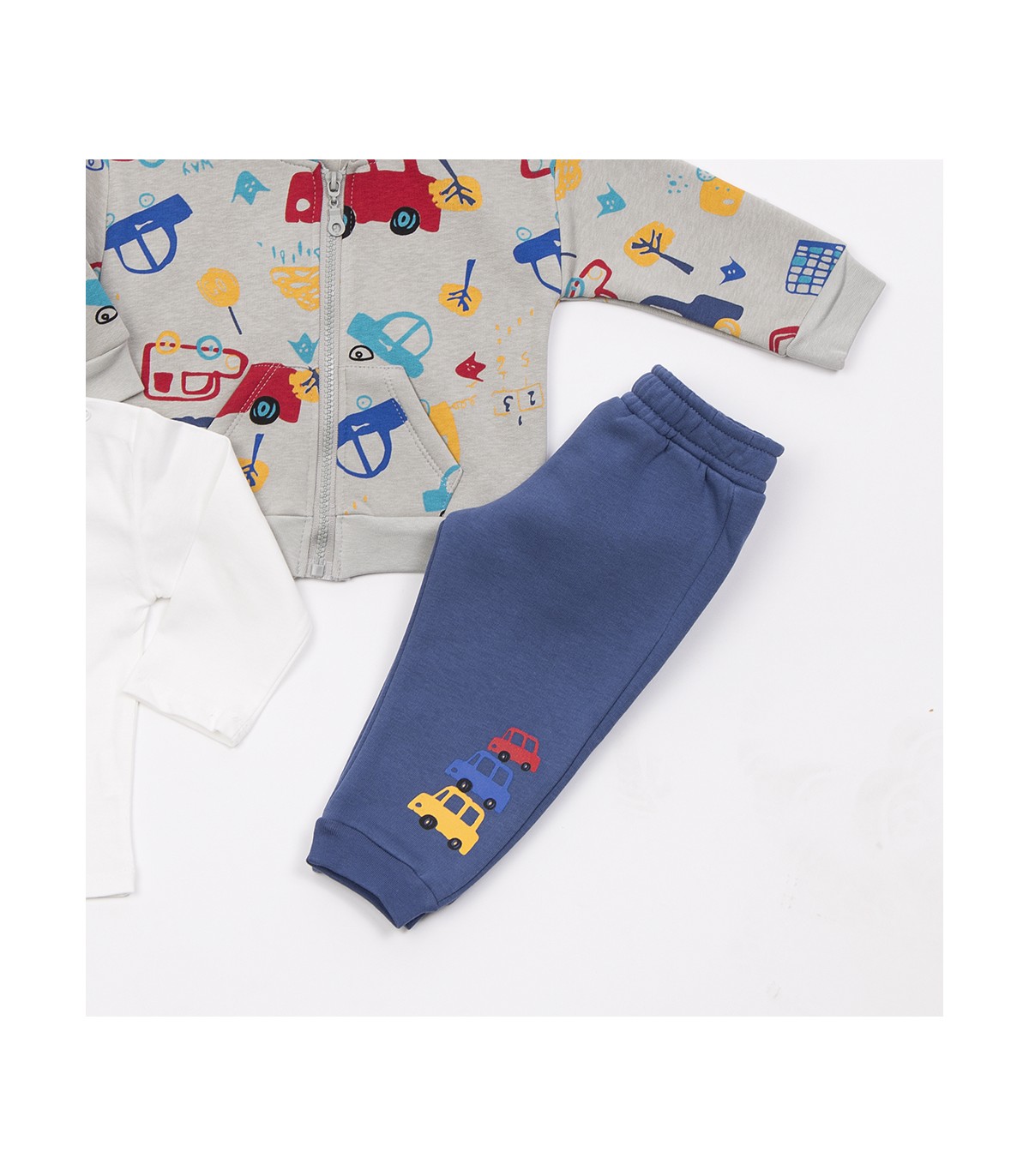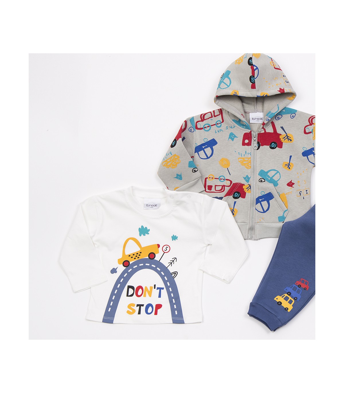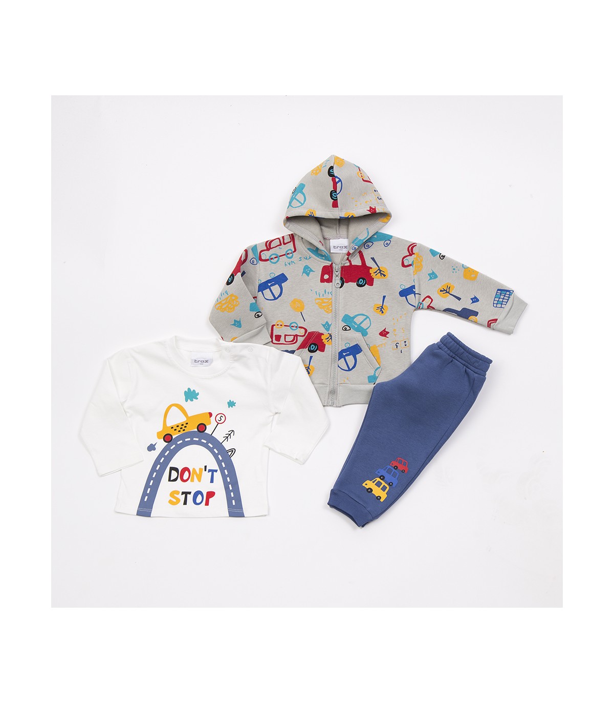 Σετ ίντιγκο παντελόνι/εκρού μπλούζα/cloudy ζακέτα