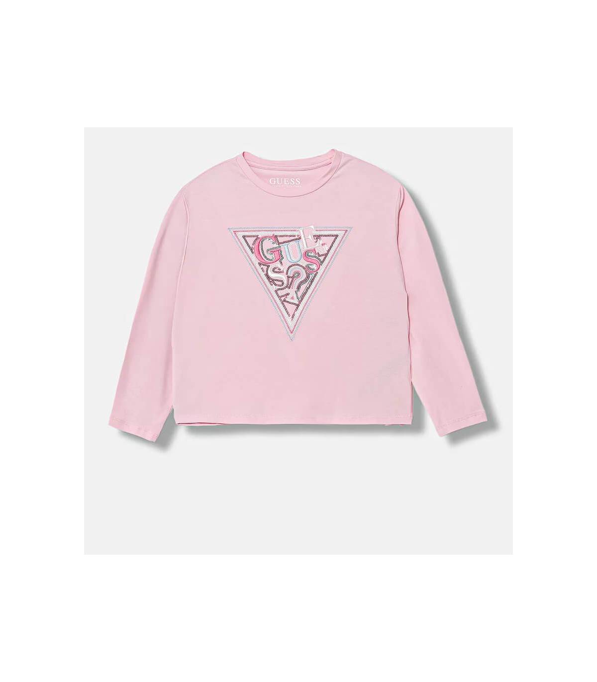 Μπλούζα με παγιέτες Guess μακό μακρυμάνικη ροζ