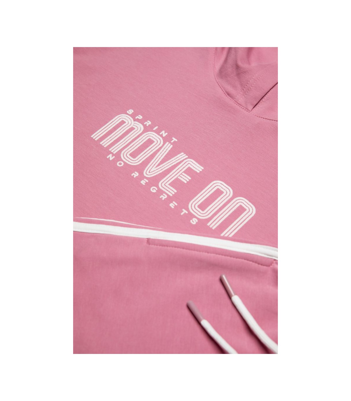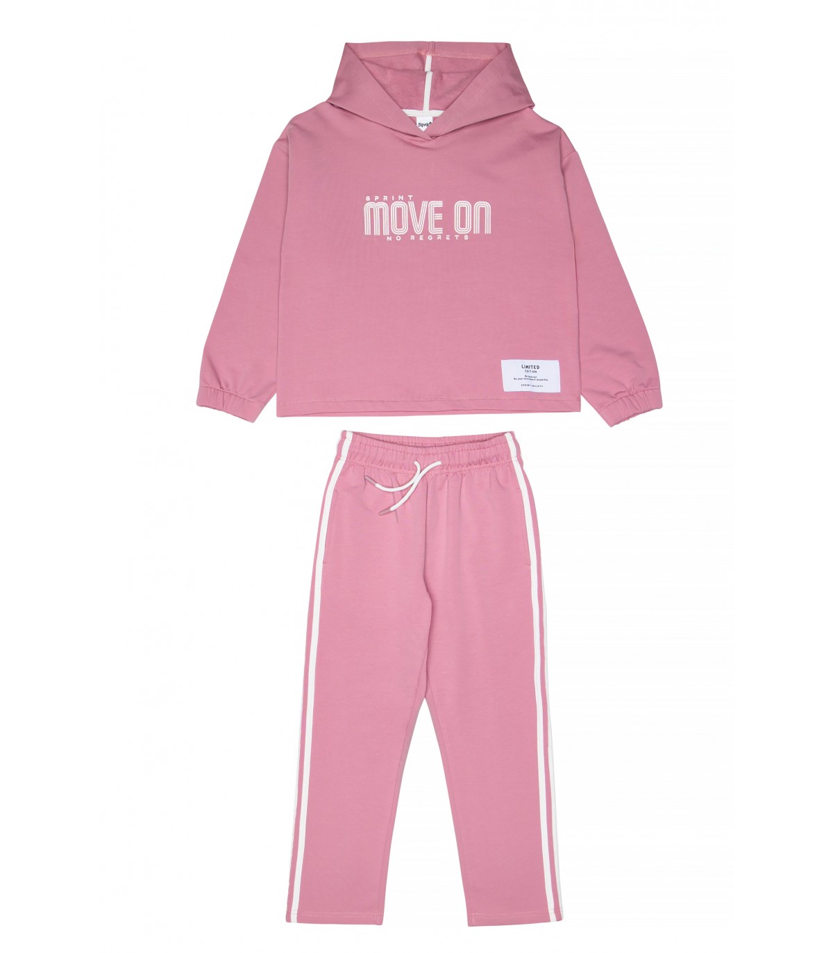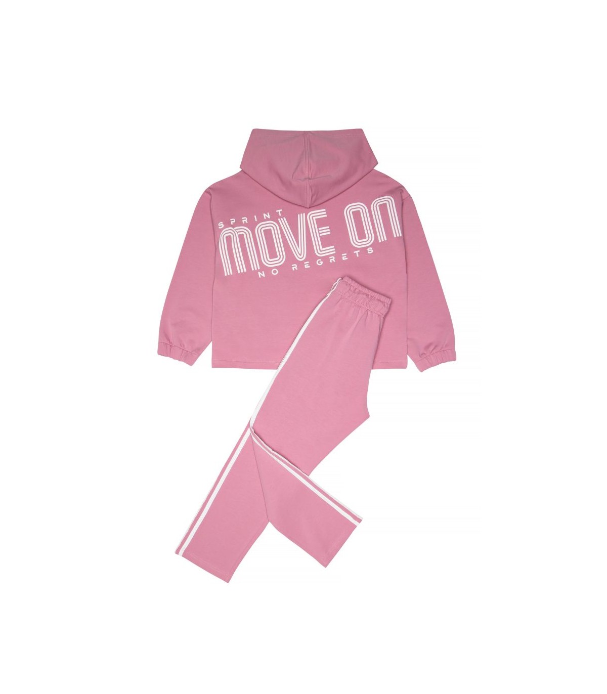 - Παιδικό σετ 2 τεμαχίων φούτερ λύκρα με χνούδι. Μπλούζα με κουκούλα και τύπωμα glitter μπροστά και στην πλάτη με ανάγλυφη υφή και απλικέ ετικέτα. Παντελόνι με ελαστικό ζωνάρι και ρυθμιζόμενα κορδόνια με πλαϊνές τσέπες και δίχρωμες αθλητικές φάσες.