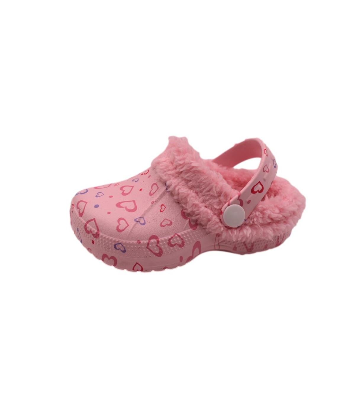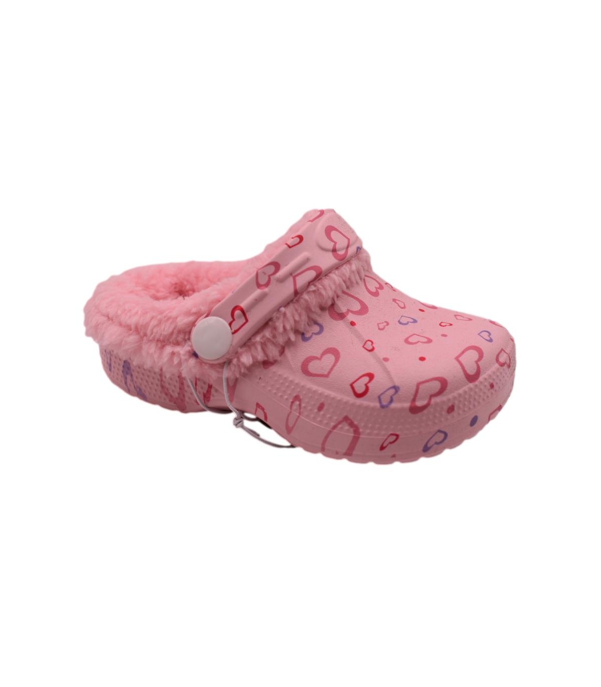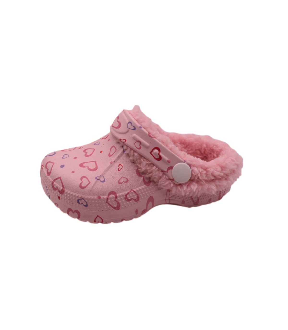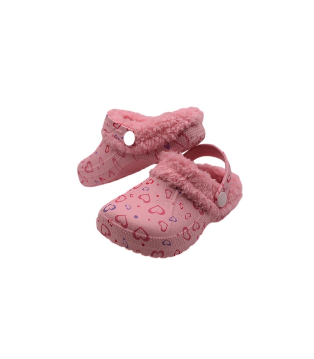 Παντοφλάκι ροζ χρώμα με καρδιές και εσωτερική γούνα