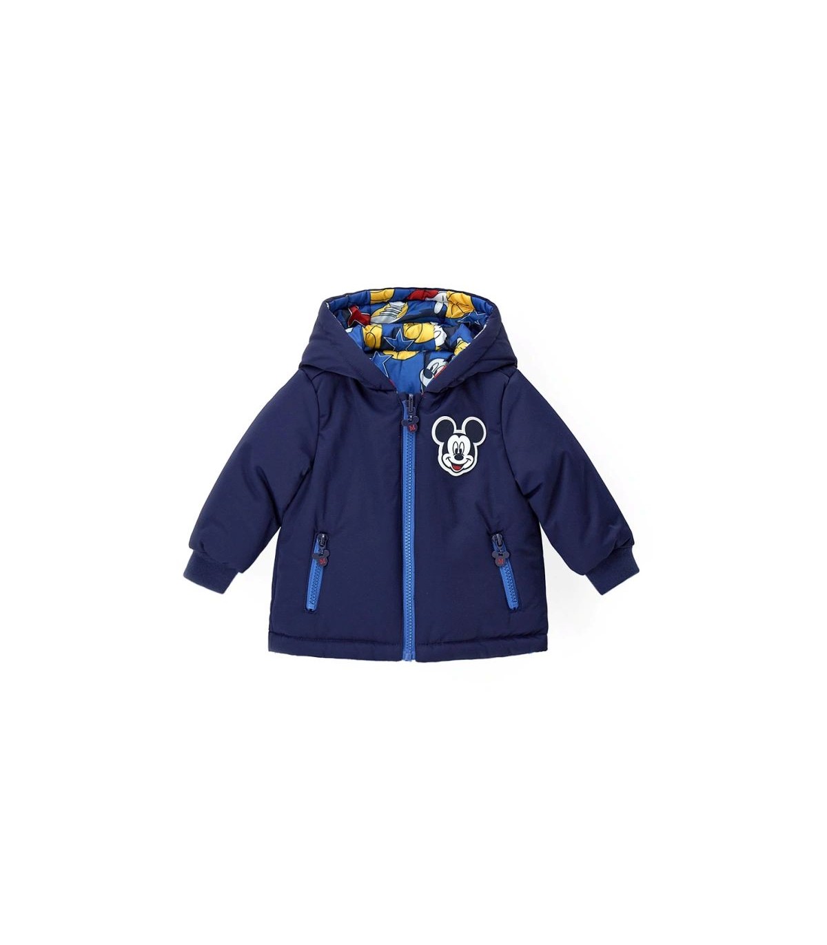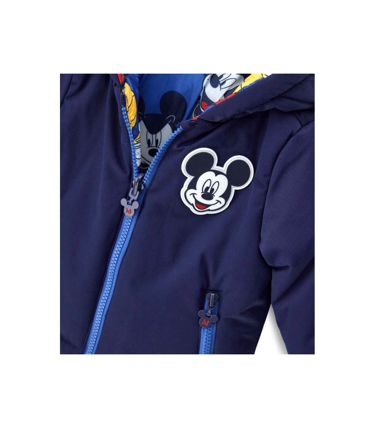 Disney Mickey Mouse αναστρέψιμο μπουφάν με επένδυση. Πλευρά 1 από μονόχρωμο νάιλον με μπροστινό έμπλαστρο και πλευρά 2 από εμπριμέ νάιλον. Άνοιγμα με φερμουάρ και ραβδωτές άκρες για ευέλικτη και άνετη εμφάνιση.